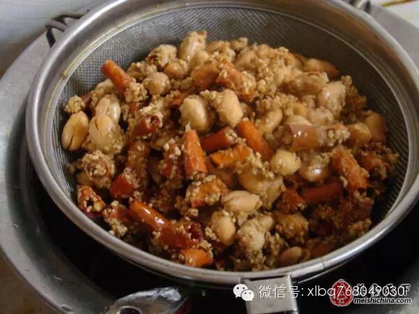 7,***后加入花生和糯米粉拌勻,讓彼此粘連。沒有糯米粉也可以用淀粉,我試過用紅薯粉比玉米粉效果要好。