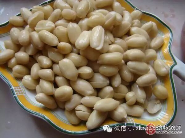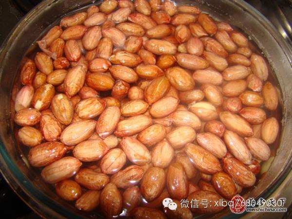 1,熱水里加入少許鹽,把花生米放入泡10分鐘。